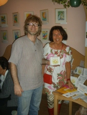 Se skladatelem Martinem Štědroněm na vernisáži výstavy "Vidět jinak než očima" a autogramiádě našeho společného dvojCD "Nakresli obraz své duše!" v čajovně U Džoudyho - říjen 2007