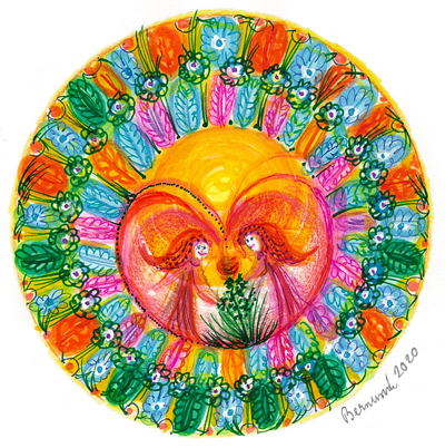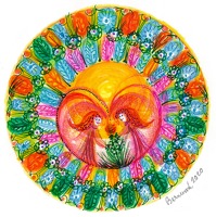 Záhony růží i voňavá louka, maličká víla z každého květu po očku potají na tebe kouká. Ve snové říši květů a víl, vysnít si můžeš bláznivý cíl. Tichounce, tiše, ať nevzbudíš víly, jeden květ utrhni a nabudeš síly. Pak směle vykroč ke svému cíli. (Mandala splnění snů pro váhavé senzitivní jedince)