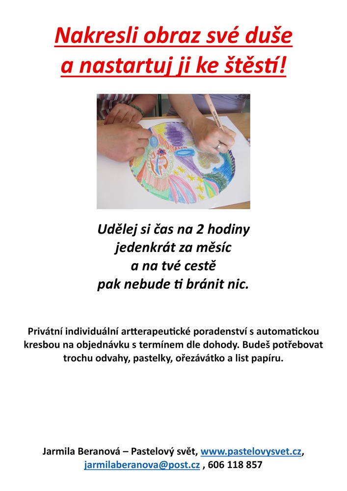 pastelovysvet > Program akcí > Přednášky, kurzy a semináře automatické kresby > NAKRESLI OBRAZ SVÉ DUŠE A NASTARTUJ JI KE ŠTĚSTÍ !